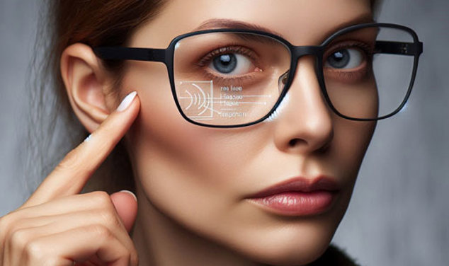Person tittar rakt mot kameran med kikare
